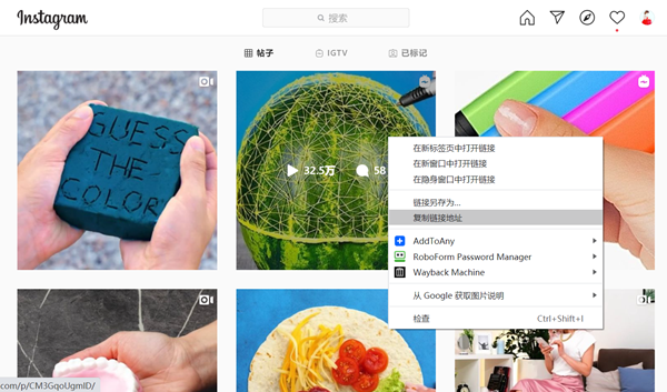 第二步:然后,打开Instagram网站,登录你的ins账号,接着找到喜欢的视频,复制其链接地址。