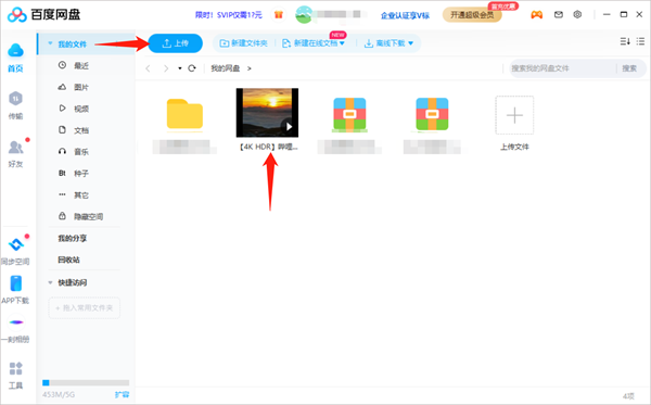 方法二: 使用百度网盘将电脑上的视频传到苹果手机上